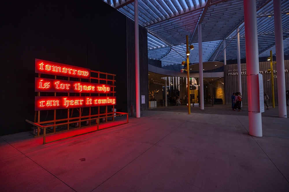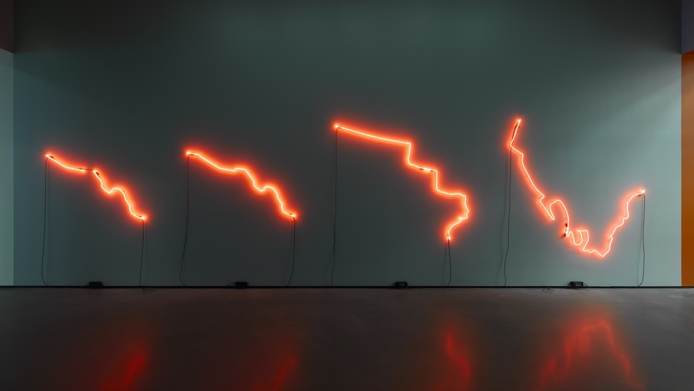 Within the collaboration, a remix of the track was created that transformed it into the immersive sound environment now on display. Morales says the resulting installation incorporates neon works and a sculptural “listening space,” accompanied by five limited-edition vinyl records of the remixes.