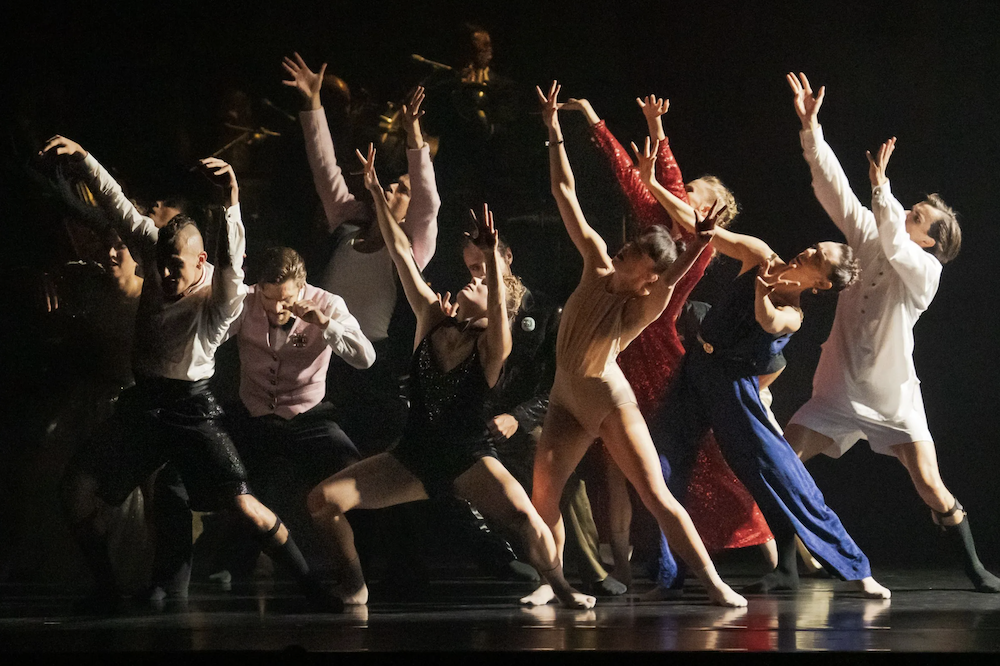 The company’s dancers are best known for their mastery of classical ballets such as Swan Lake, Giselle, and the like. But in Red Carpet, they abandoned tradition and cavorted like swans on steroids. Tossing aside their pointe shoes, pink tights, and tutus, the dancers launched into outer orbit propelled by the stunning band. The abandon was wanton, the energy maxxed, the overall race pace interrupted only by sporadic lava lamp-like episodes that feel like group hallucinations or slow, touch-less orgies.