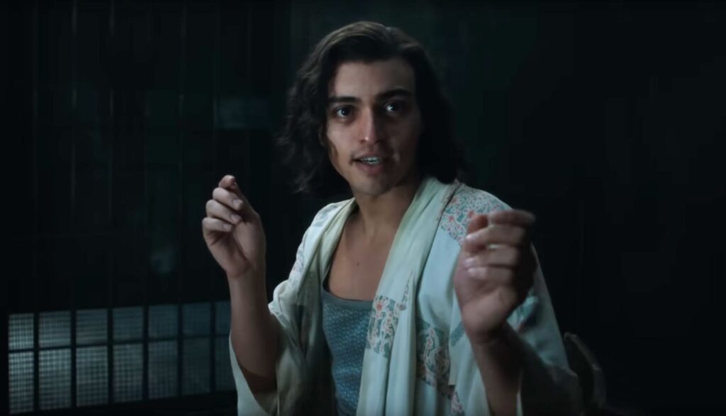 “That was an actor’s gift Bill gave me,” Tonatiuh says. “With Molina, I wanted to tell a genderless expression. Then with Kendall, I really wanted to look at what masculinity is through a classic Hollywood lens. And so, I modeled it after Gene Kelly or Montgomery Clift. I had Errol Flynn’s hair, and so I really wanted to get that Mid-Atlantic style of acting to juxtapose it so starkly from Molina, and then at the very end, of course, like the full feminine fantasy. In a weird way, I got to play the entire gender spectrum.”