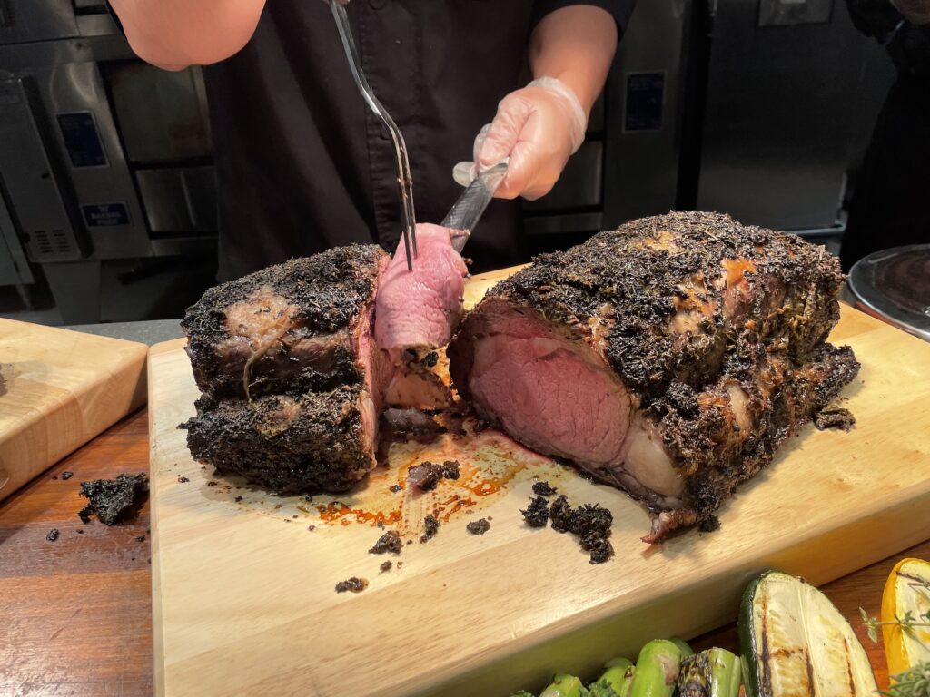 Ticketholders who have access to the premium areas of Chase Center will be served a rotation of beautiful dishes such as freshly carved prime rib and Porterhouse with red wine demi-glace, crab and lobster risotto, and forbidden rice. I’ve dined at the adjacent Miller & Lux restaurant several times, and feel secure saying that this meat is just as tender and juicy. I thought about it all day after leaving.