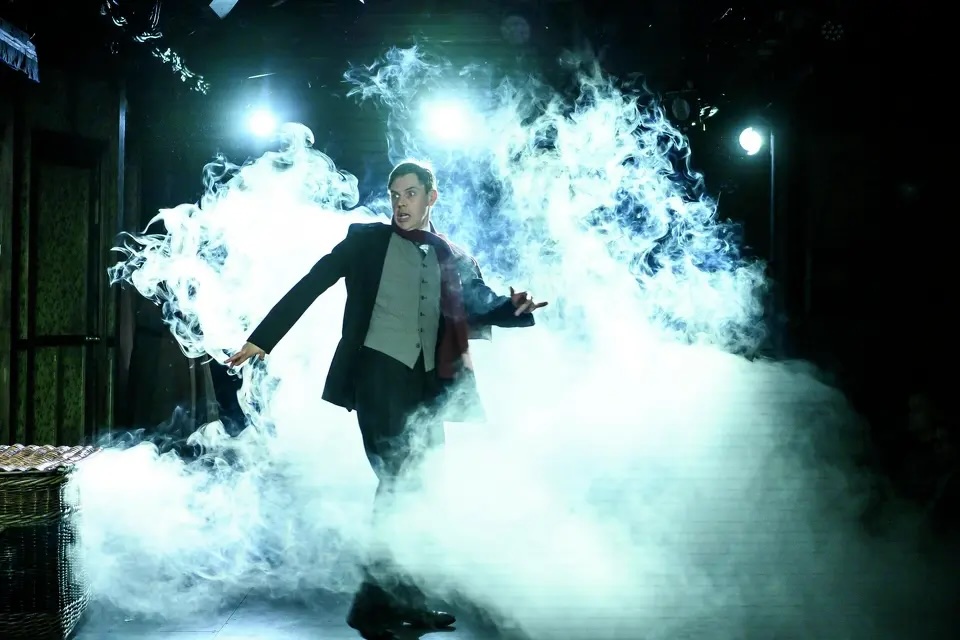 If you’re not familiar with Susan Hill’s The Woman in Black (through November 23 at Lesher Center for the Arts, Walnut Creek), it’s the story of a man named Arthur Kipps (David Acton) and his travels as a young man (James Byng) to a remote English village–yes, another one–to see about the remains of an estate. In course of his duty, he’s haunted by pale woman in all-black, whose appearances always precede tragedy. Now, Arthur wants to share his story with us.