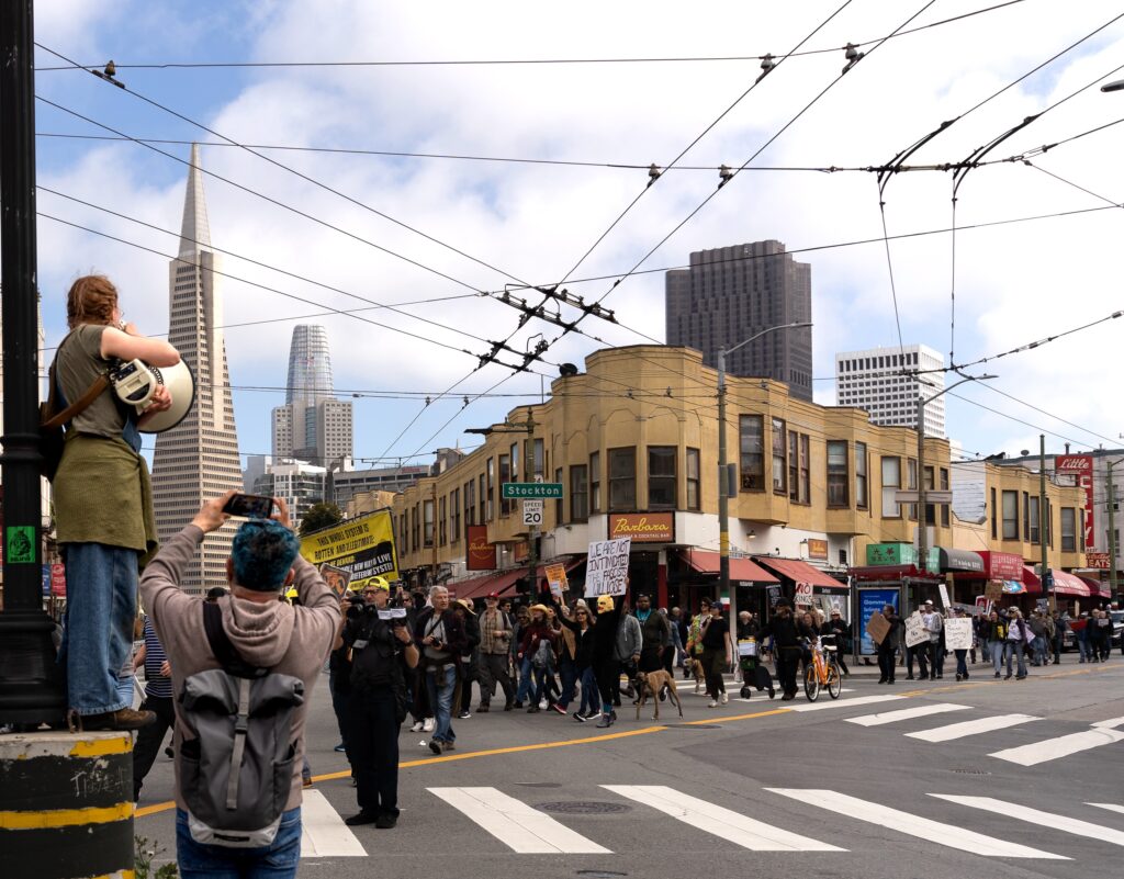 Atheirne said many local Refuse Fascism volunteers are young people like them, compelled to take a more active role in removing the Trump regime after the last election. The Northern California chapter also has a number of older members who participated in the major protests of the ’60s and know the impact they can have. Atheirne added that the group coordinates with more connected, experienced individual activists and activist organizations such as Indivisible to try and build larger resistance networks and momentum to derail the Trump regime.