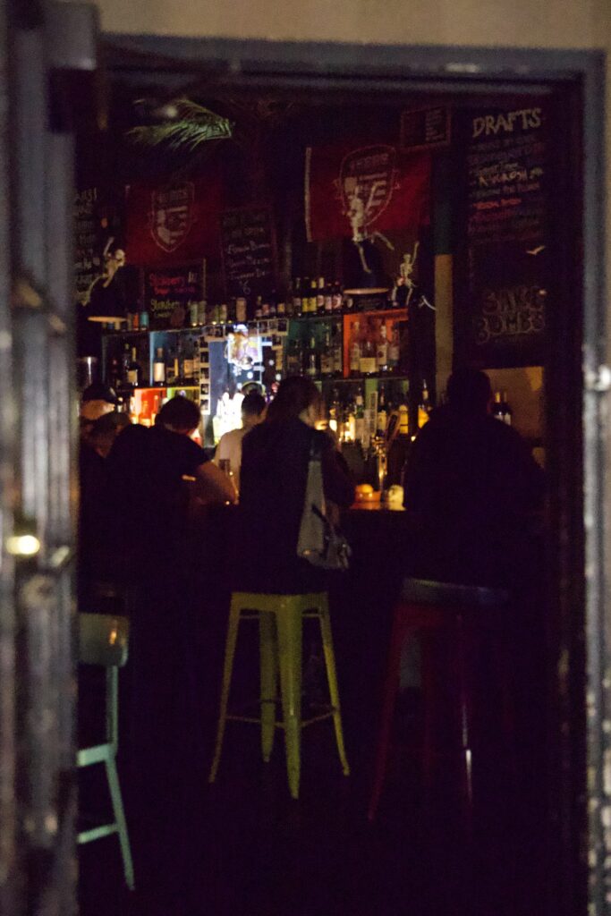 Inside the ambient-lit Fly Bar, a Saturday night vibe took hold: music played, and laughter and animated chatter emanated from silhouetted figures. Wielding a flashlight, owner Kevin Kynoch said that while the blackout did slow business down, he appreciates that the power outage gave new people an opportunity to check out his spot, joining the regular customers who came out.