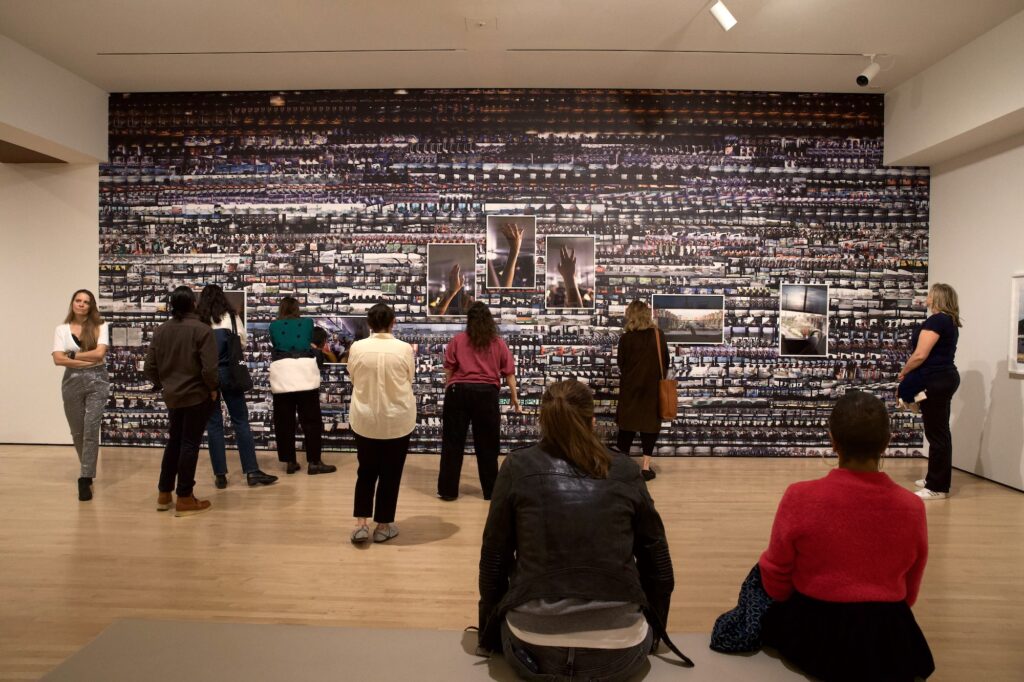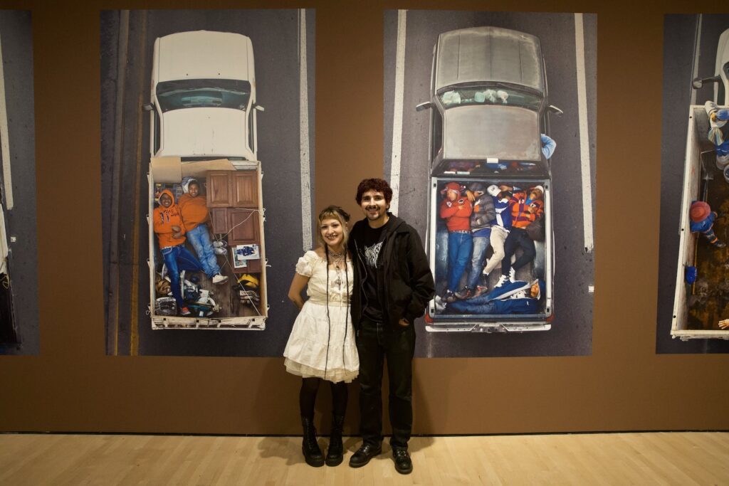 Another visitor, Andres Ruiz, is a 26-year-old, first-generation Mexican American born in San Francisco. He lives and works in San Bruno as a barber. Like many, Ruiz first saw the “Carpoolers” series online when it went viral. He said that he found viewing the photos in-person to be very powerful, and that they reflected his own family life, too.