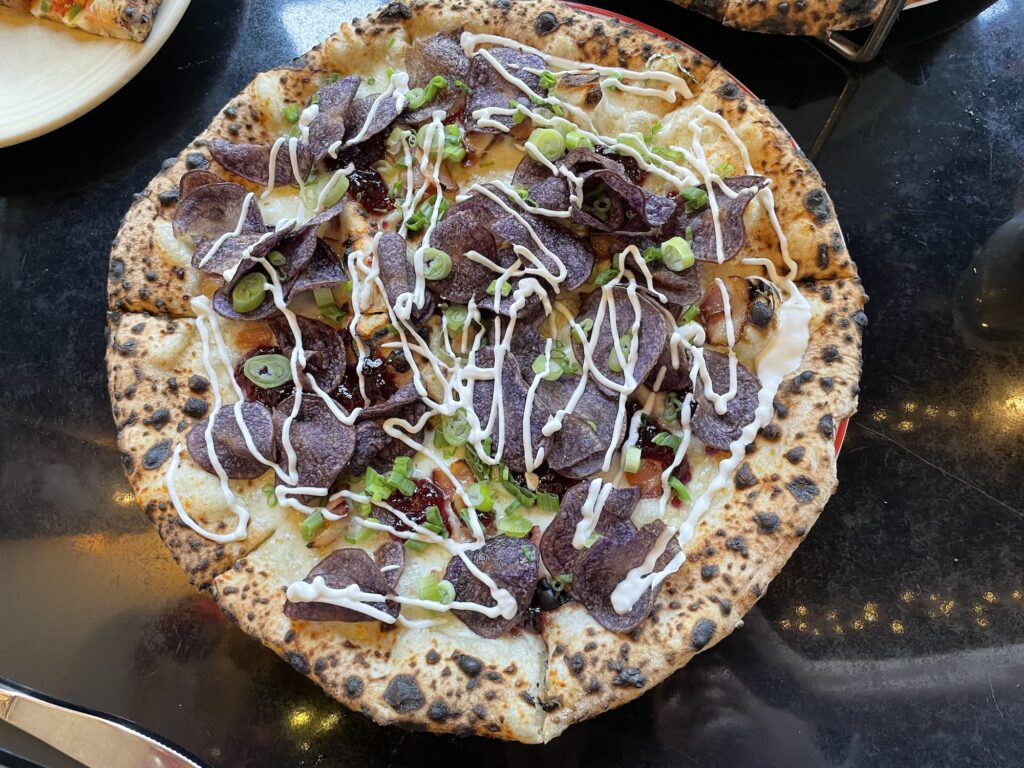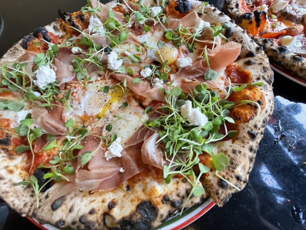 I was recently invited to try five Napoletana and California style pizzas that have just been added to the menu. All are wood-fired at 900 degrees, and the California pizzas are made with Caputo blue pizza flour that’s blended with a house stone ground integrale multigrain flour.