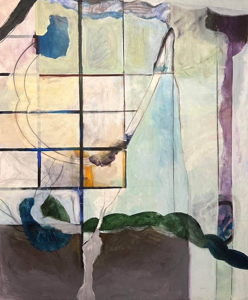 Nelson pointed to Rococo Figures, 1947, which he said is a homage to a Mark Rothko painting Bischoff saw in 1946. “This is one of my favorite pieces,” he said. “It was at the San Francisco Museum of Art, which would become SFMOMA, and then in George Adams [Gallery] in New York and Berggruen in New York. It was shown in a lot of interesting places.”