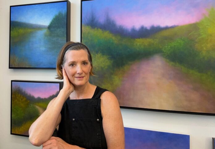 “During the pandemic, I felt incredibly fortunate to have a studio to retreat to. That daily practice of painting became a grounding force, a place where I could process uncertainty and create something restorative. The landscape offered a respite from what felt beyond my control, reminding me of the stillness and resilience of nature,” she said.