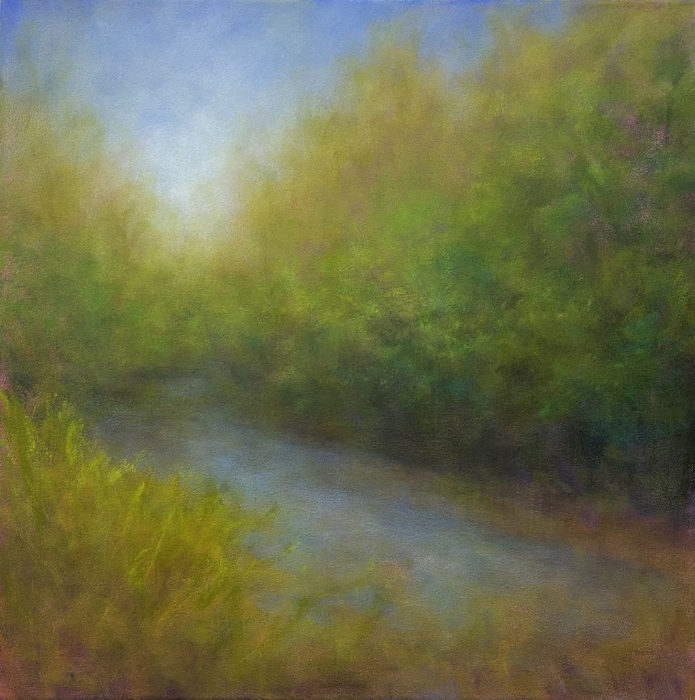 “I’m not trying to document a specific location so much as to capture the feeling of being there: the quiet stillness at dawn, the warmth before sunset, the shimmer of fog lifting over water. My motivation comes from a desire to create contemplative spaces where viewers can pause, breathe, and reconnect with nature. Each painting becomes both a record of place and a meditation on memory, using light and color as the language to express what’s unseen—the mood, emotion, and passage of time,” she said.