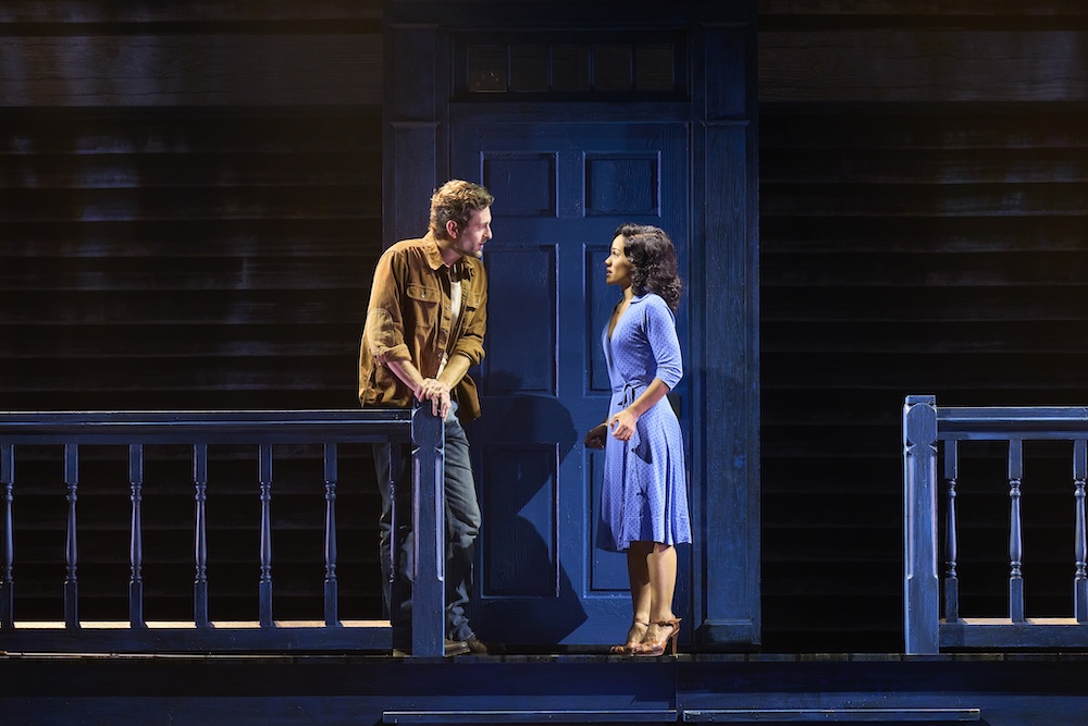 To this production’s credit, the songs aren’t bad, formulaic though they may be. More importantly, Beau Gravitte and Sharon Catherine Brown’s respective turns as Old Noah and Old Allie work, due to the sheer amount of sincerity the veteran actors bring. Allie sinks deeper into Alzheimer’s as Noah recites the story of their courtship from the titular notebook, and the duo’s performances conjure their profound history. This ‘60s-set musical ignores the realities—nay, dangers—of interracial relationships at the time, but the two older actors successfully convey the heartbreak of watching a loved one slowly vanish.
