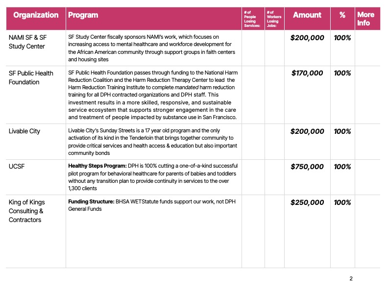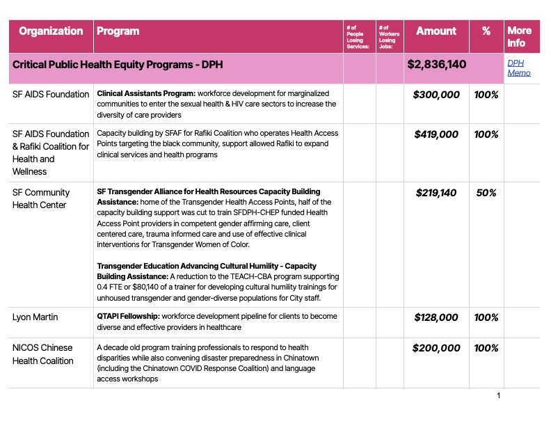 We all knew that cuts were coming to the San Francisco budget (not for the cops or the district attorney, of course), but a recently released list of contract eliminations for grassroots community service providers shows that the Mayor’s Office seems to think the only public safety spending that matters is law enforcement.