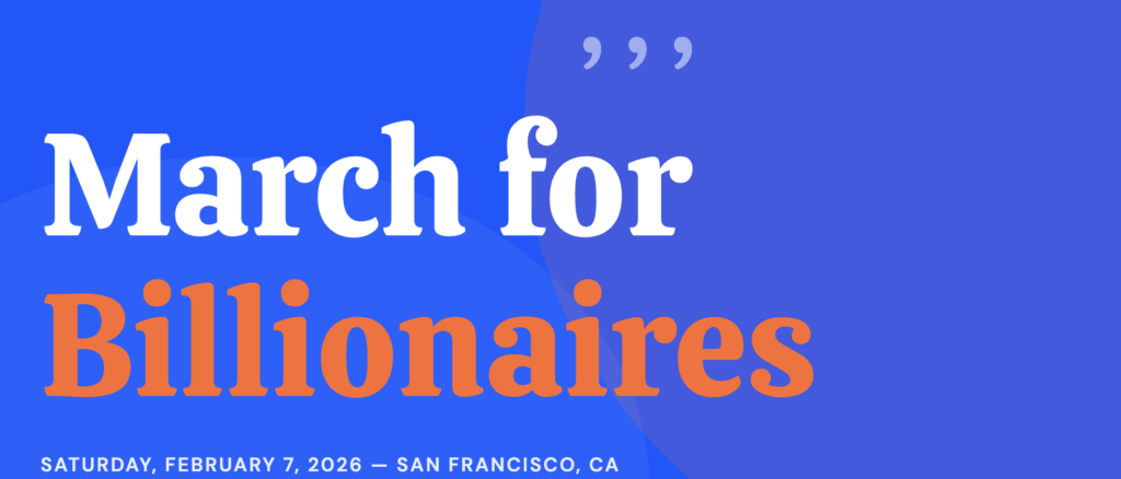When I first saw this, I was pretty sure it was a joke: Somebody is messing with the very rich and the astroturf groups they fund in San Francisco. Nobody could seriously be discussing a “march for billionaires,” could they? This must be another version of Billionaires For Bush.
