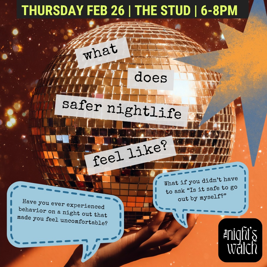 To that end, The Night’s Watch is hosting a free launch party at the Stud on February 26, 6pm-8pm, demonstrating how they’re taking a proactive, productive approach to the problem (something many feel the California’s recent, carceral-reliant and venue-burdensome drink-spiking laws failed to do). The org plans to transform the SoMa bar into a vision of how nightlife can be safer for everyone, explaining innovative staff training techniques, handing out items like practical drink covers and SOS cards to hand to staff in case speaking is impossible, even ways to make club bathrooms feel more welcoming.