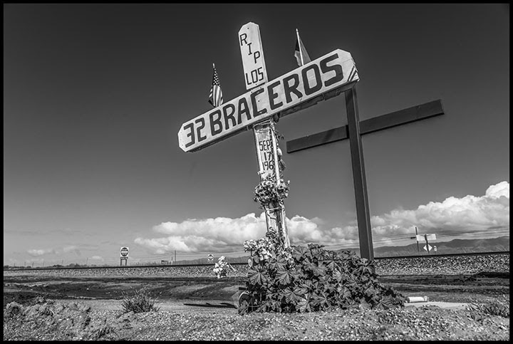 The terrible crash, the anonymity of the workers, and the disgraceful conditions in which they worked and died, led to a huge outcry. Ernesto Galarza, the longtime opponent of the bracero program, wrote a damning report to Congress, to assign responsibility. That helped end the program two years later. Today, two crosses erected at the crash site remember the dead.