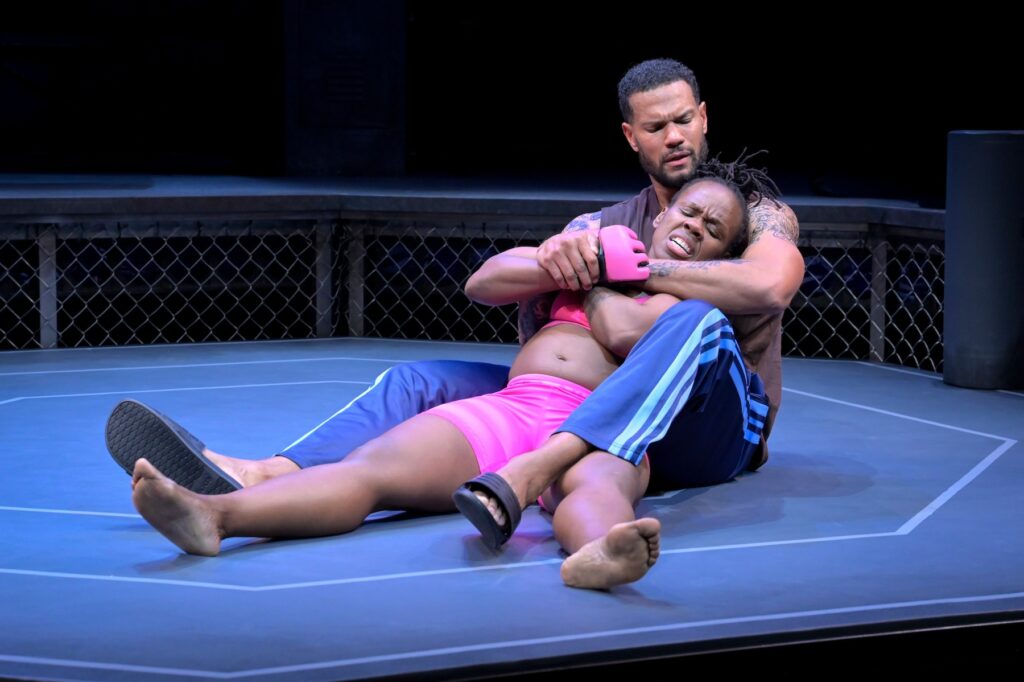 Our story opens in an Mixed Martial Arts octagon (gorgeously designed by the ever-reliable Nina Ball), where regional champ “Big” (Af-Am Shakes vet Sullivan Jones) has just finished defending his well-earned title. Post-match, he’s sore and solitary, certainly not in the mood to deal with fans. So, you can imagine his surprise when the young woman who approaches him is more than a fan, she’s his sister Josephine (aka “Lil,” played by Anyanwu herself). They haven’t seen one another in at least a decade, and she—possibly an undiagnosed ADHD patient—won’t stop talking. But at least now they know the other one is alive.