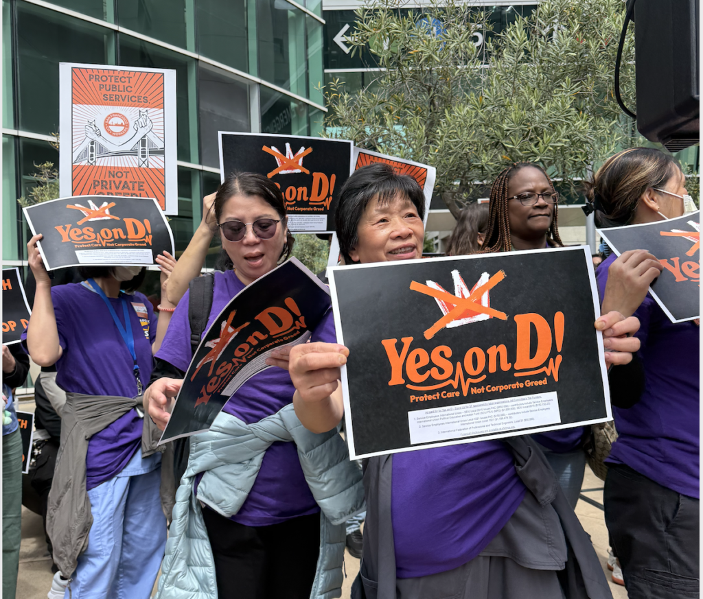 As the march moved along the surrounding blocks of the hospital, the message remained the same. The importance of public services staying open, stopping the layoffs, and encouraging voters to vote yes on Proposition D. “This is about who San Francisco is choosing to protect,” a speaker told the crowd. “And right now, it is not the people who need it most.”