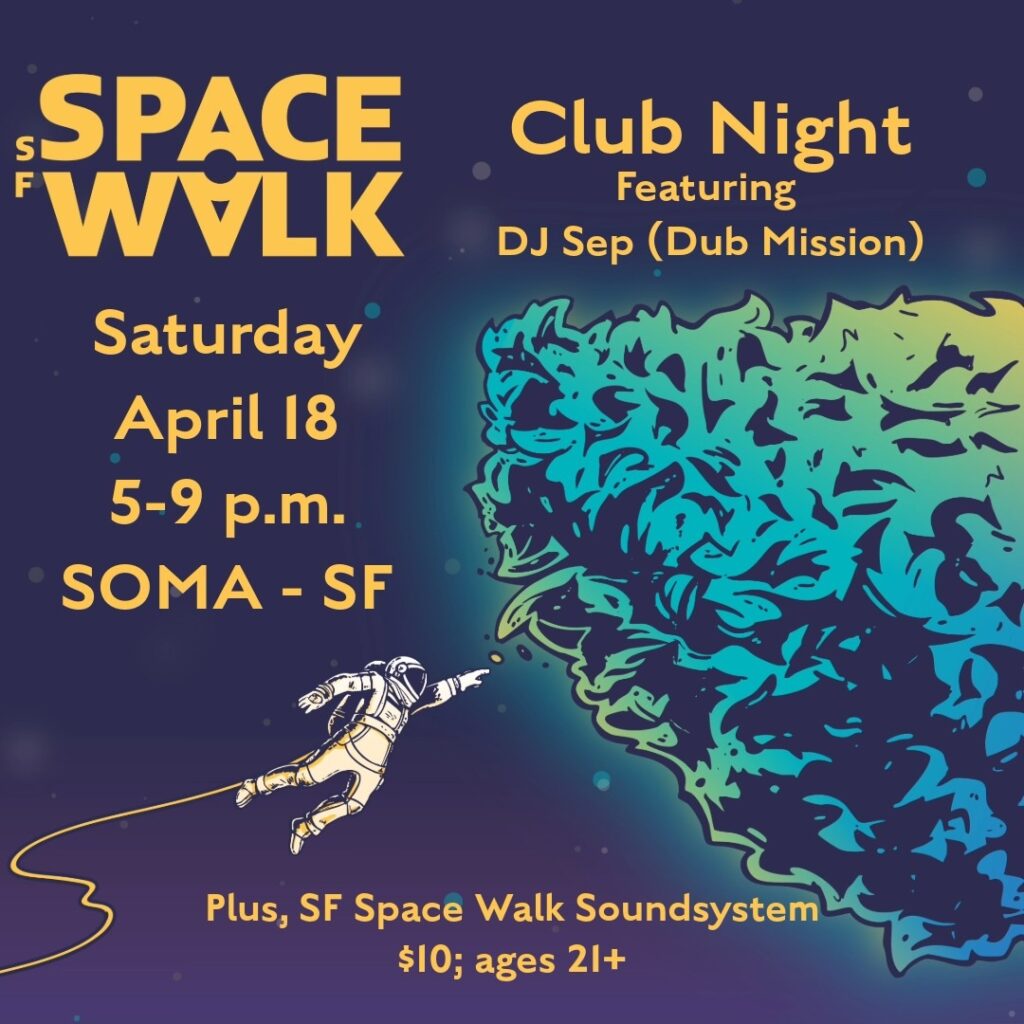 Space Walk kicks off on Tuesday, April 14 at SPARC on Polk Street from 4-7pm. With Moon Valley Cannabis, Emerald Sky edibles and Fire King Extracts