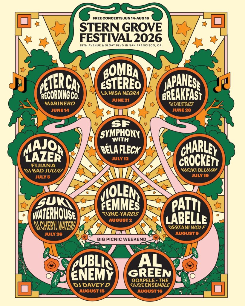 The San Francisco tradition returns June 14 through August 16 with that dynamic lineup featuring Patti LaBelle, Major Lazer, the fantastic Tune-Yards, Japanese Breakfast, Suki Waterhouse, Charley Crockett, Goapele, and more. For a full listing and RSVP instructions, go here.