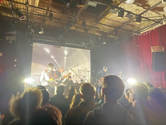 It’s one thing to merge genre boundaries and slap that old “art-rock” tag on your press release. It’s another thing to fluently fuse odd-yet-matching sample-based, post-dub-step 2010 ideas with those aged rock stretches. With a powerful light show and intricate animation scrolling endlessly in the background, this quartet—who recorded their new release at Total Refreshment Centre, the London cultural institution at the epicenter of contemporary jazz—radiated amalgam blues throughout Rickshaw Stop to a pretty full house for a Tuesday night.